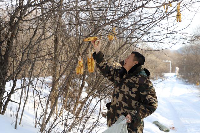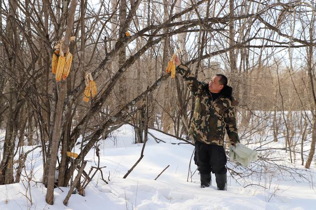 数九寒冬,吉林哈泥国家级自然保护区内积雪达30至40厘米厚,大量野生动物出现食物短缺的现象。为有效应对低温和降雪带来的野生动物觅食难问题,确保区内野生动物安全越冬,保护区胜利保护站辖区9名巡护人员踏着厚厚的积雪,把玉米挂在树枝上、投在雪地上,给野生动物送去冬季食物补给。